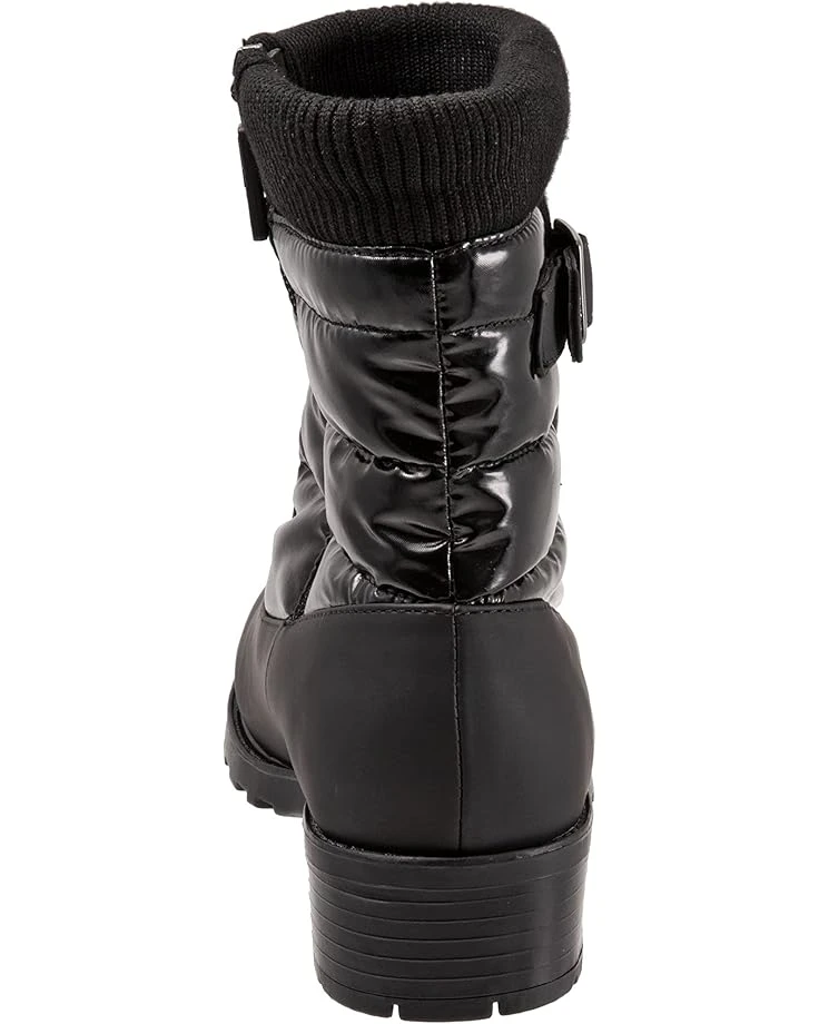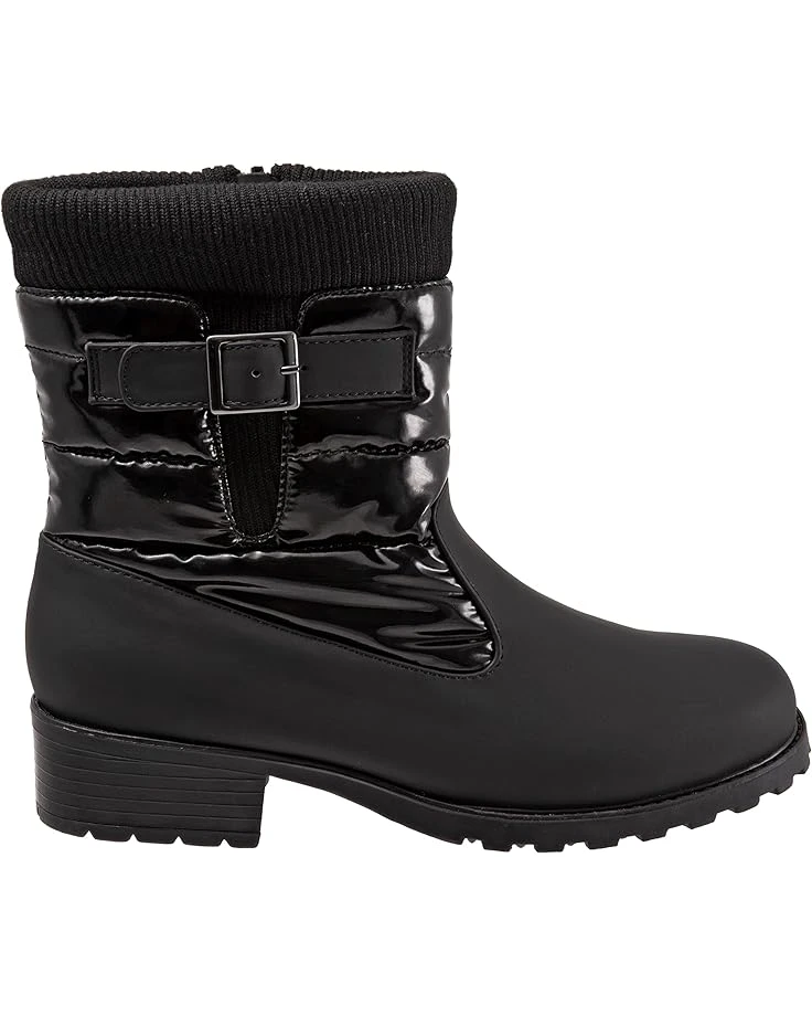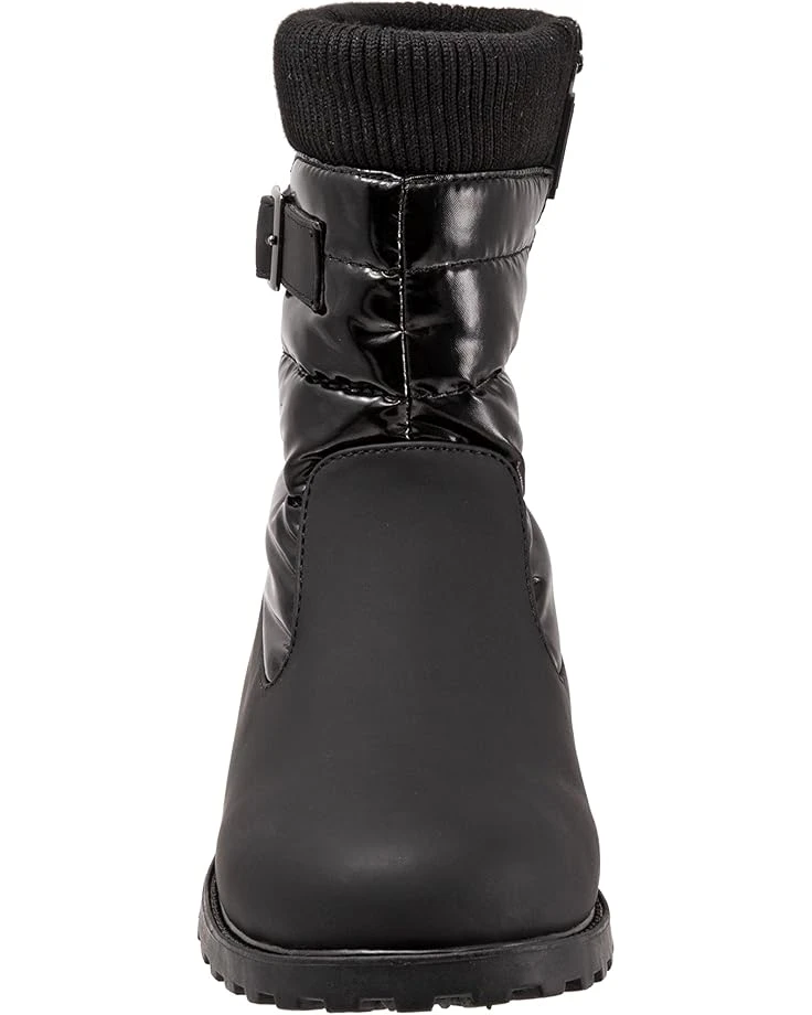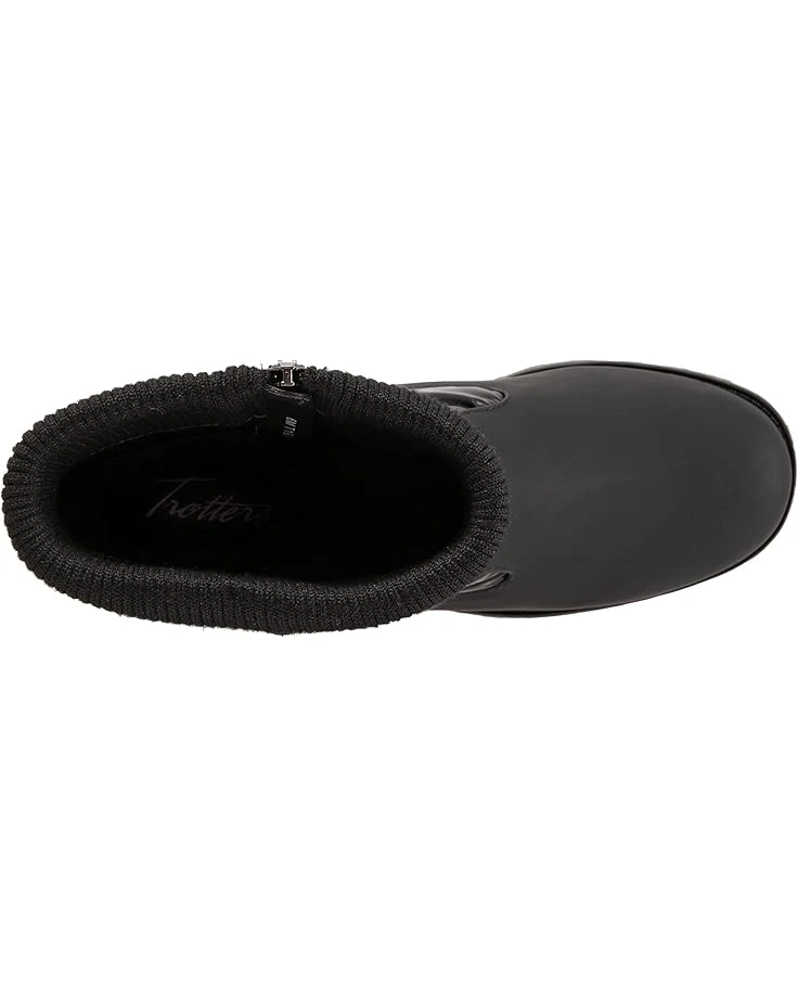 - The Trotters® Berry Mid boot features a textured waterproof man-made upper and slip-resistant lightweight rubberized sole.