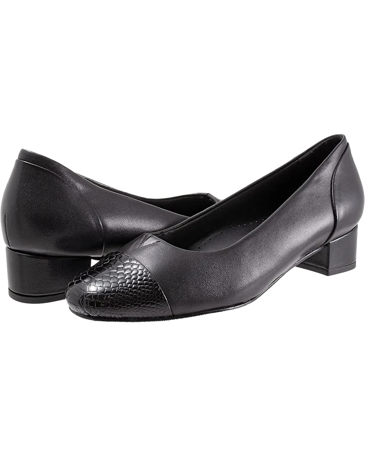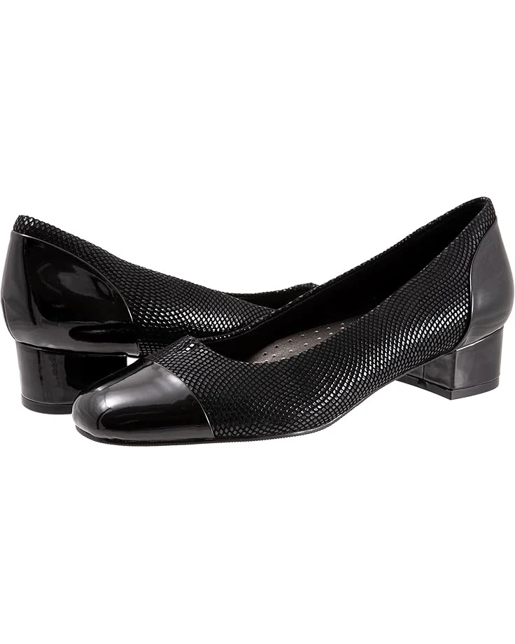 - The Trotters® Daisy pump will add sophistication to any wardrobe piece. The patent leather (toe cap and heel wrap) is vegan as well as the micro fiber. The main part of the shoe is leather.