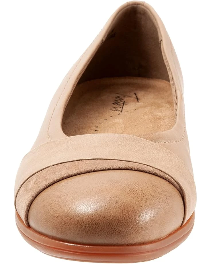 Very comfortable and didn’t flop when I walked. Decoration on toe makes the shoe dressy. And the toe box is comfortable. These are my first pair of Trotters. I’ll look for this brand.
