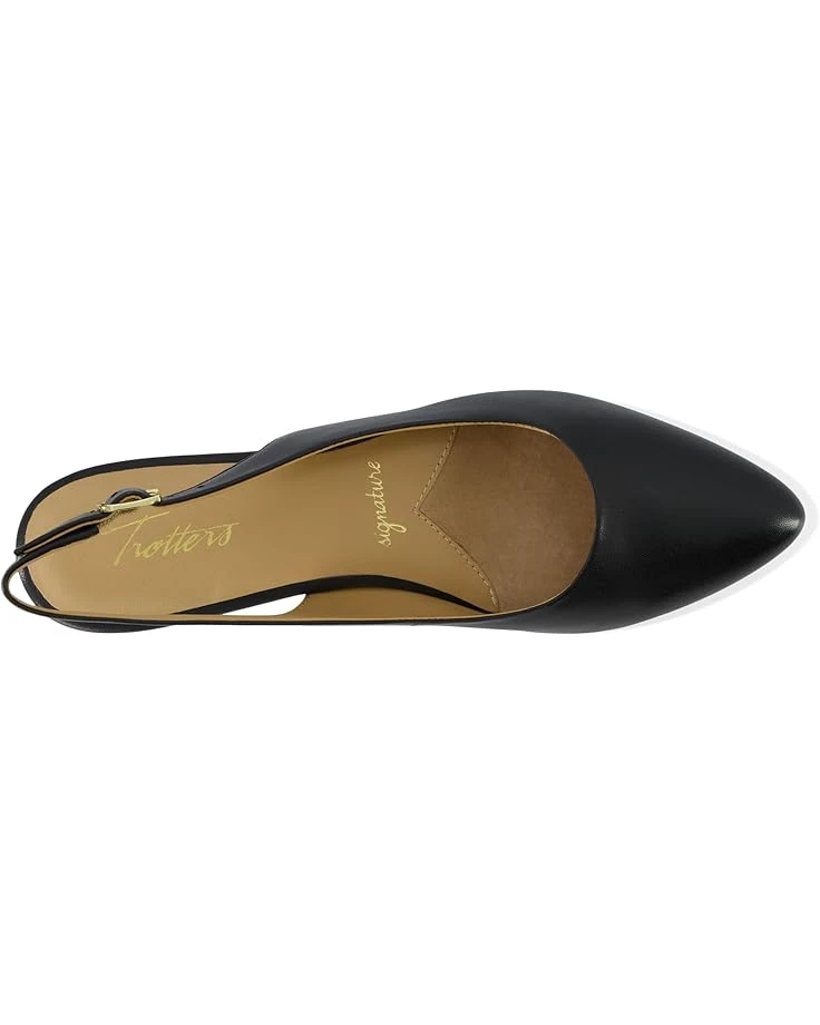 - The Trotters® Evelyn shoes are classic flats with an adjustable strap for comfort. These flat shoes have a pointed toe silhouette and leather insole for everyday use. The leather upper, leather lining, and arch support of these flats make them a comfortable choice. Lightweight and cushioned, these leather flats work for different occasions.