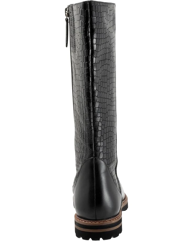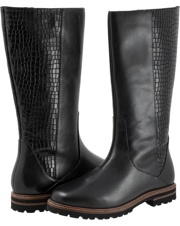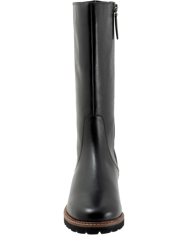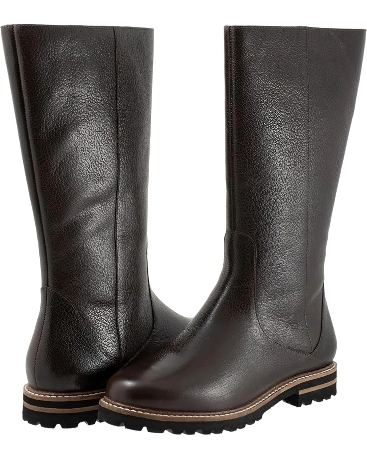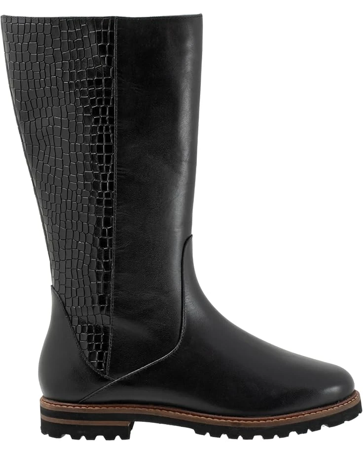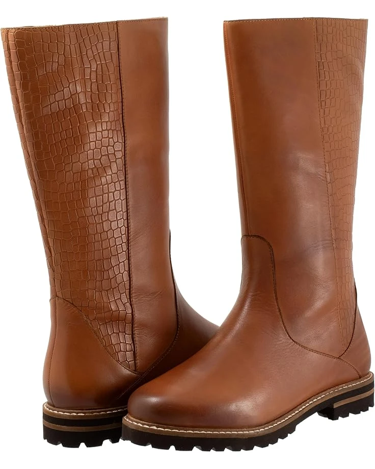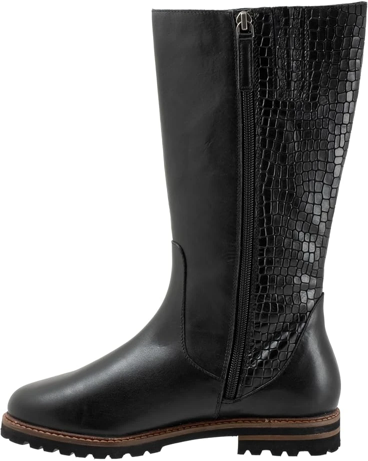 - Slay a stylish look and walk in style by wearing the Trotters® Franki boots. The round-toe boots have leather upper construction with a removable cushioned footbed with arch support and latex. Den 30+0.8mm non-woven by cuts insole for additional comfort. The mid-calf shoes have slightly flat heels and a zipper closure.