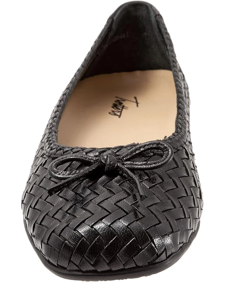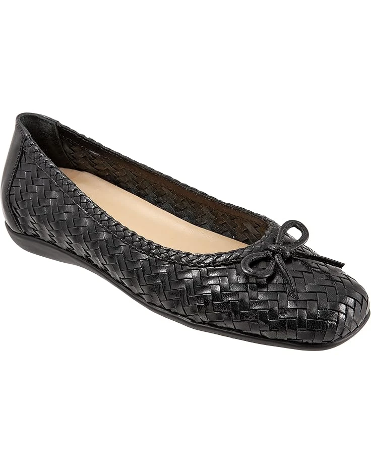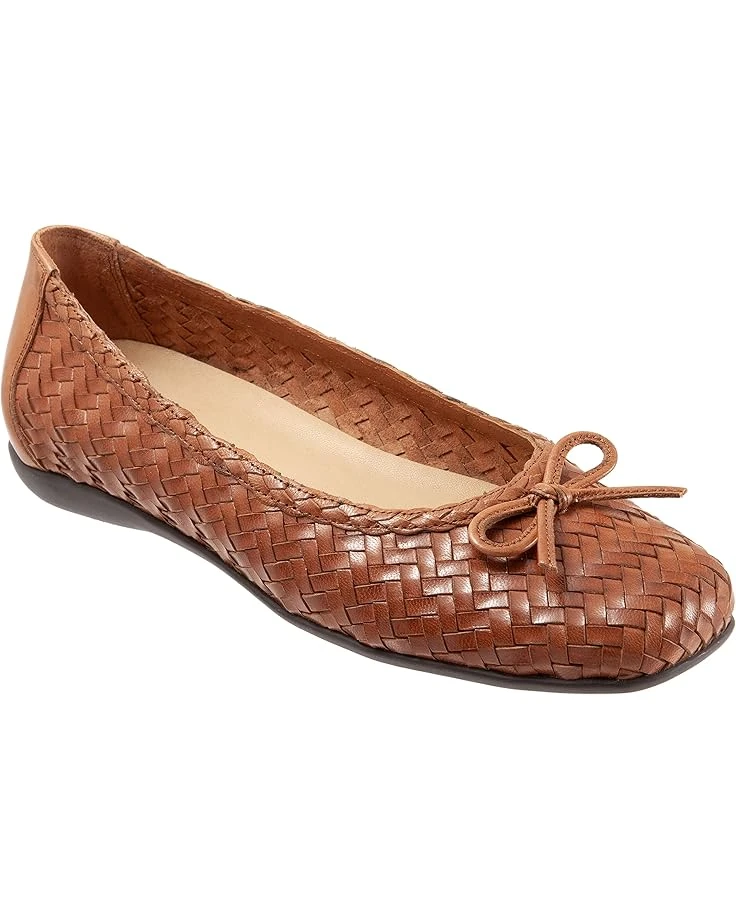 - Mix style and comfort in the Trotters® Gillian featuring a classic slip-on style ballet flat this time with a square toe and woven detail throughout constructed from genuine leather and a well bedded footbed for all day wear.