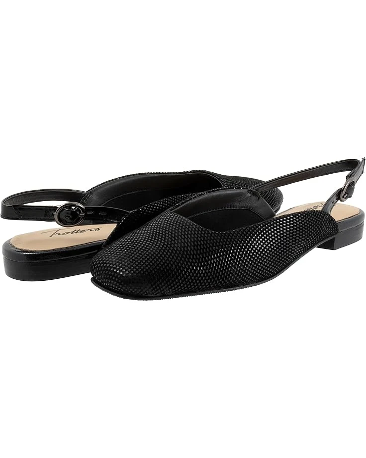 - Stay stylish in the classic and cushioned comfort of the Trotters® Holly flats that are designed to compliment your everyday attire with the pretty square toe design.