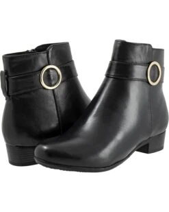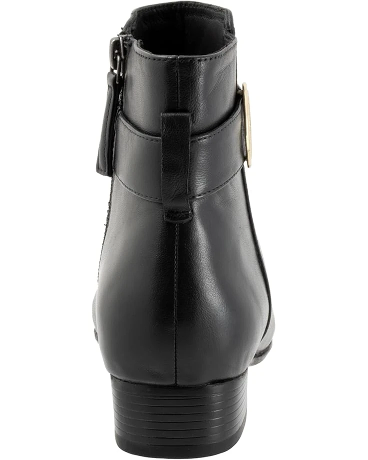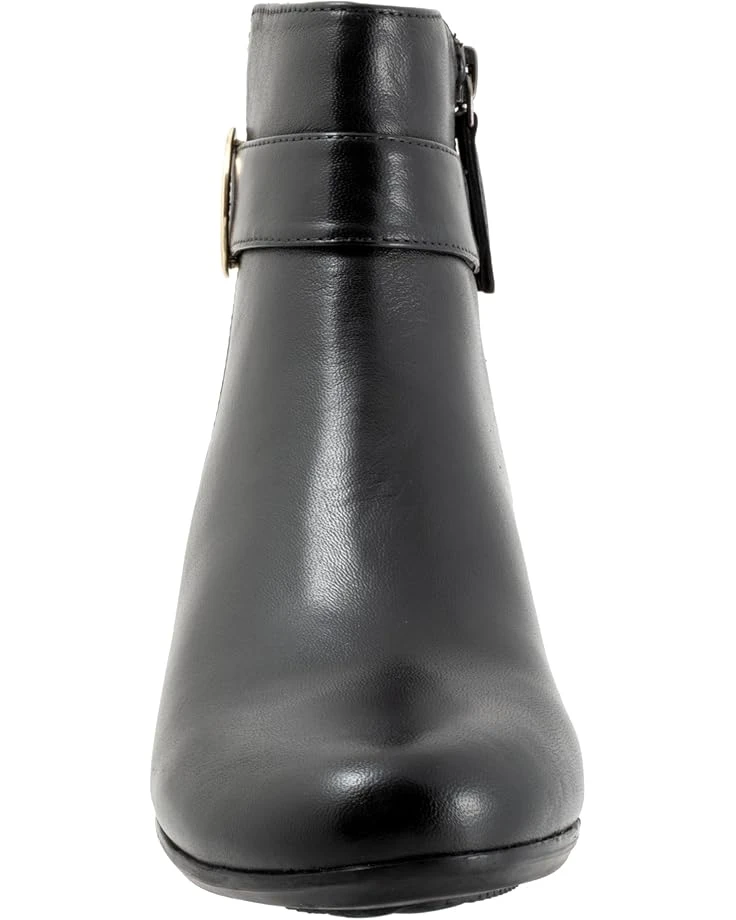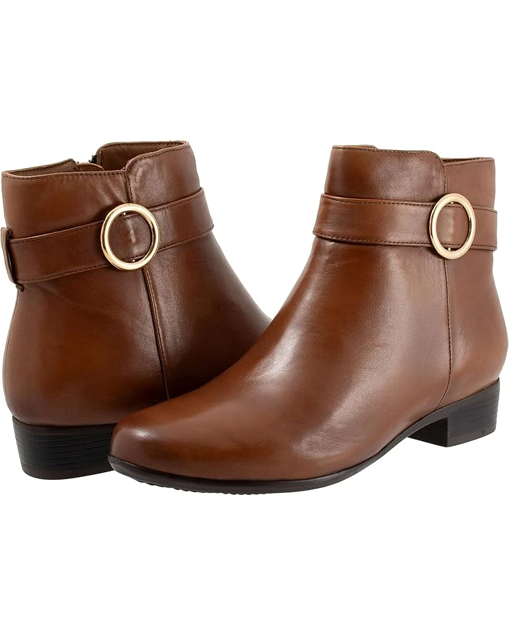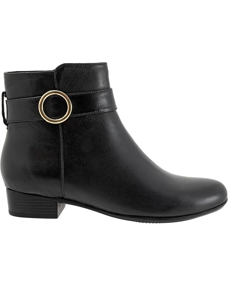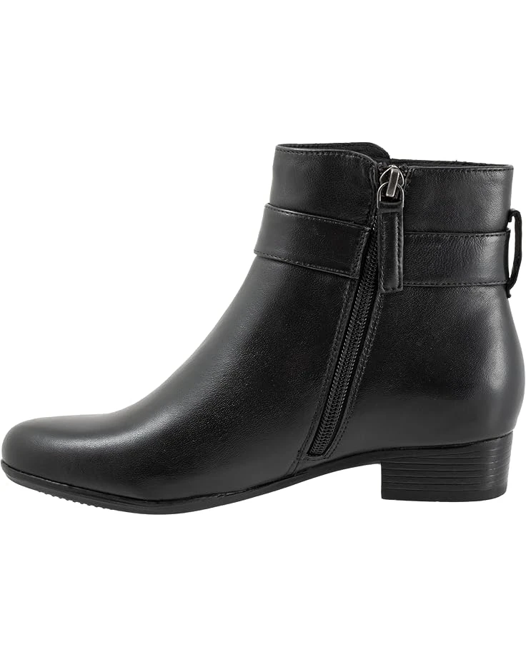 - Bring a dramatic touch to your look by styling the Trotters® Melody boots. The pull-on style boots have a side zipper closure with a statement buckle design embellishment on the ankle, flat heels, and a round-toe design. The ankle-high boots have a leather upper, molded polyurethane foam insole, removable cushioned footbed with arch support for additional comfort.
