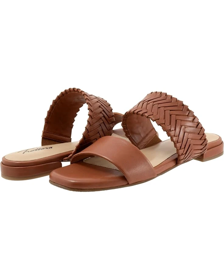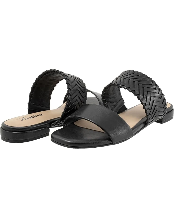 - A perfect choice for casual outings and everyday style, the Trotters® Nalane sandals work for different occasions. The leather upper of these sandals comes with two straps, one with a sleek herringbone band design with elastic goring on the instep. These flat sandals come with a memory foam footbed and breathable leather lining. Lightweight and breathable, these leather flats are perfect to pair with different styles and outfits.