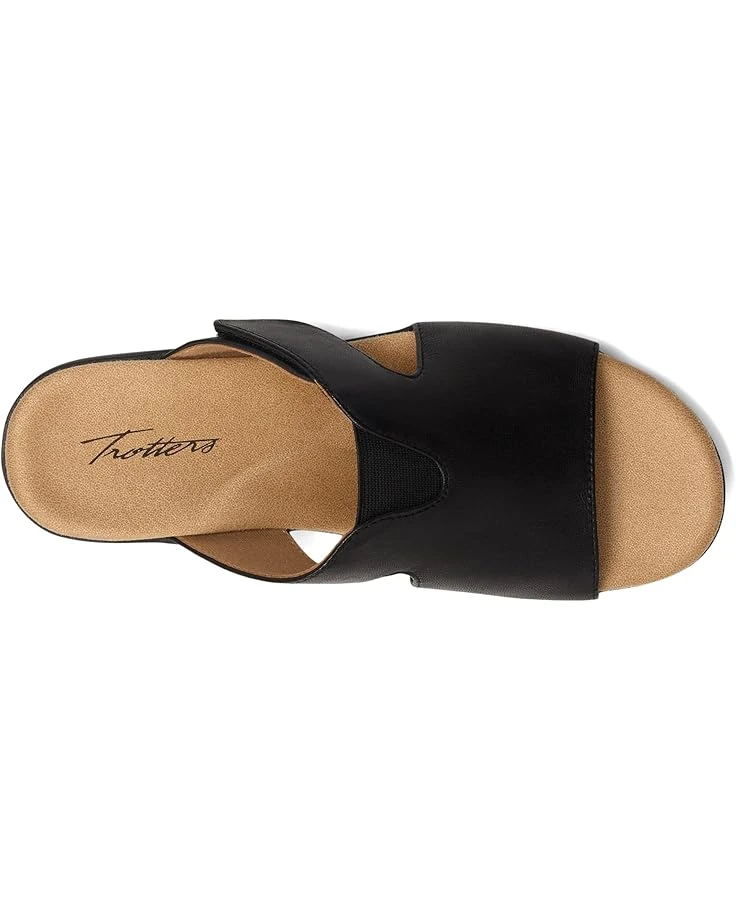 - Step out in utmost comfort wearing the Trotters® Roxine. Crafted from rubber upper, velvet lining, and foam insole, this pair of sandals features open round toe, slop-on style, adjustable strap, hook-and-loop and elasticized goring, and contoured footbed.