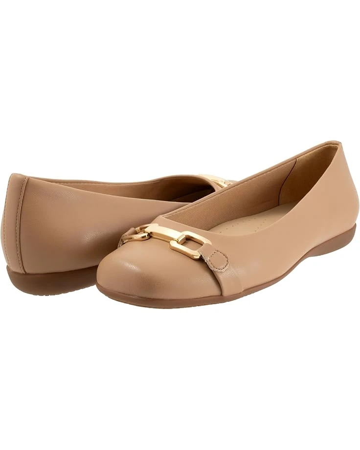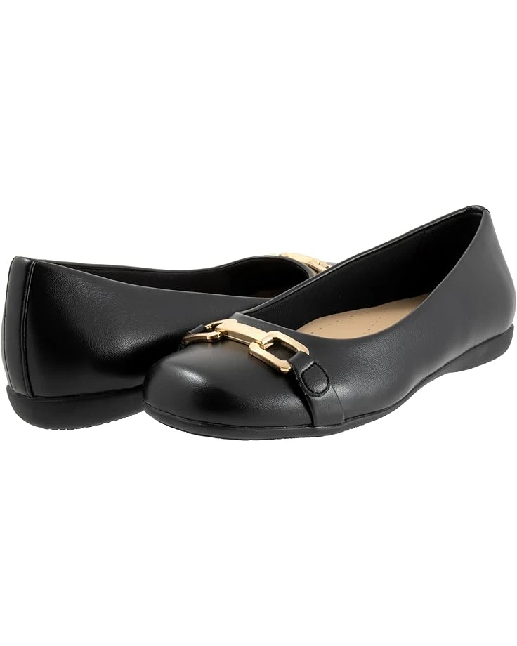 - Perfect your stride with an uncomplicatedly luxurious style wearing the Trotters ® Sadie Flats. The pull-on footwear features leather upper with polished metal ornament and cushioned removable footbed offering arch support.
